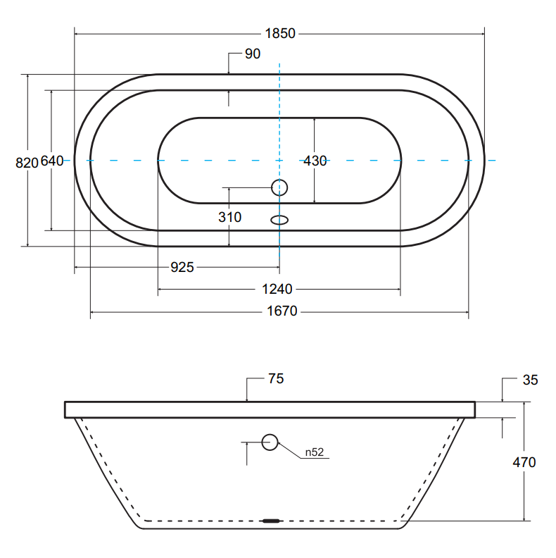 - Automatyczny syfon z przelewem chrom w standardzie lub automatyczny syfon prostokątny z przelewem biały lub odpływ klik-klak chrom czyszczony od góry