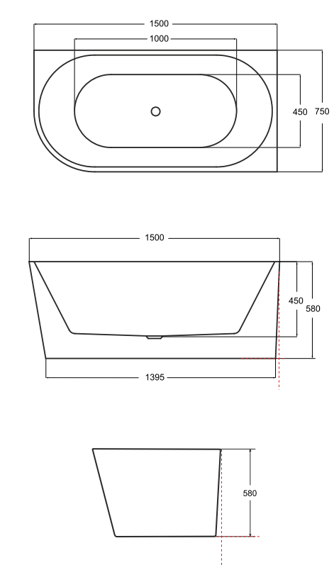 Wanna wolnostojąca BESCO ZOYA 150x75cm, przyścienna, prawa, z syfonem, biała WAS-150-ZP