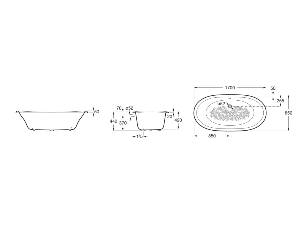 Wanna wolnostojąca ROCA NEWCAST CLASSIC 170x85cm, żeliwna, biały/czarny A233650002
