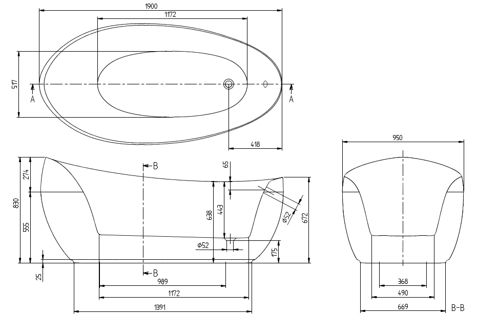 - Zakres dostawy: 1 x wanna wolnostojąca, 1 x przedłużony odpływ i przelew(chromowany)
