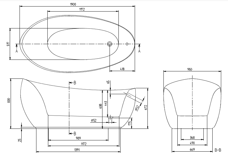 - Zakres dostawy: 1 x wanna wolnostojąca, 1 x przedłużony odpływ i przelew(chromowany)