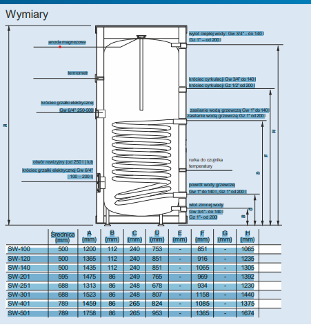 SW-201 wymiennik c.w.u. stojący z wężownicą