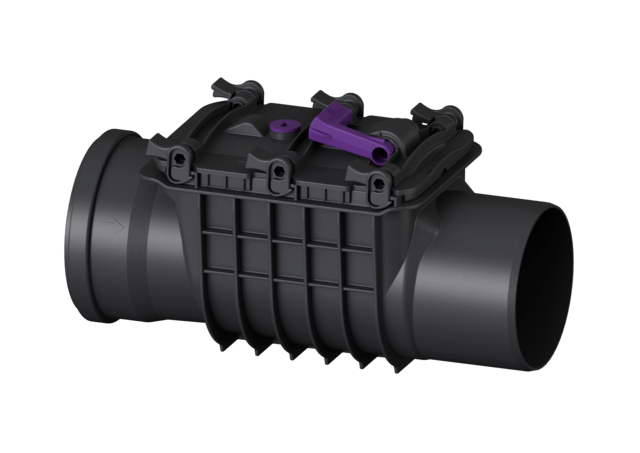 Zawór przeciwzalewowy do ścieków bez fekaliów jest wyposażony w dwie klapy mechaniczne, które zamykają się podczas przepływu zwrotnego. Jedna klapa zwrotna służy jednocześnie jako ręczne zamknięcie awaryjne.