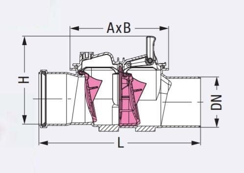 Zawór przeciwzalewowy do ścieków bez fekaliów jest wyposażony w dwie klapy mechaniczne, które zamykają się podczas przepływu zwrotnego. Jedna klapa zwrotna służy jednocześnie jako ręczne zamknięcie awaryjne.