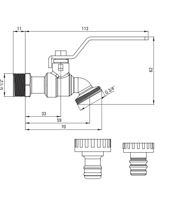 Zawór kulowy czerpalny ogrodowy z adapterami - 1/2"