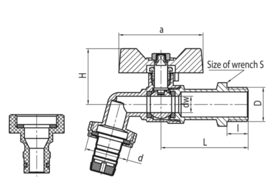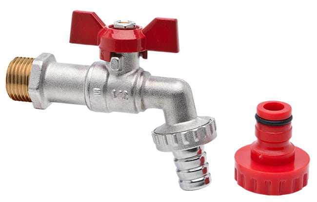 OLIGO Kurek kulowy czerpalny z dławikiem z motylkiem aluminiowym (MAl) z końcówką do węża i szybkozłącza