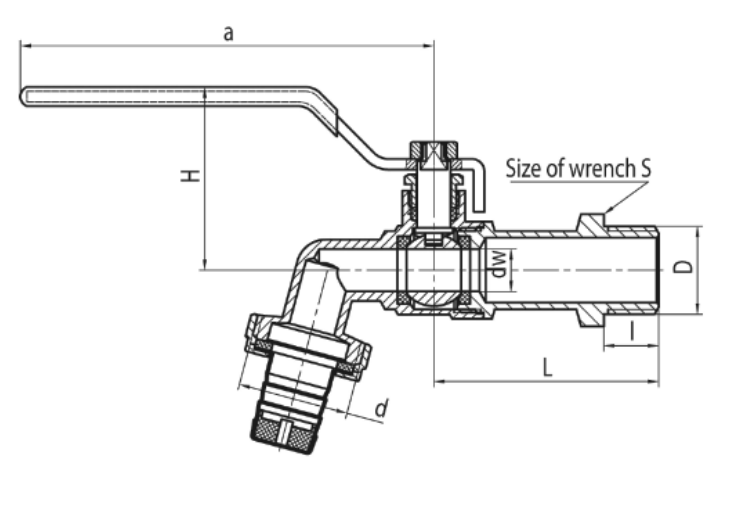 OLIGO Kurek kulowy czerpalny z dławikiem z dźwignią stalową (DSt) z końcówką do węża i szybkozłącza