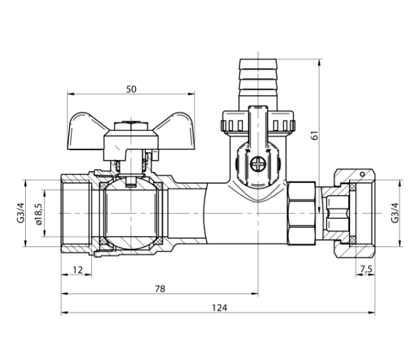 Zawór kulowy VALVEX SPIN DN20 3/4" x 3/4", z obrotową nakrętką, z motylkiem 1473980