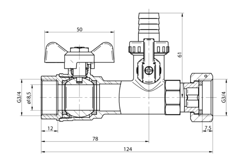 Zawór kulowy VALVEX SPIN DN20 3/4" x 3/4", z obrotową nakrętką, z motylkiem 1473990