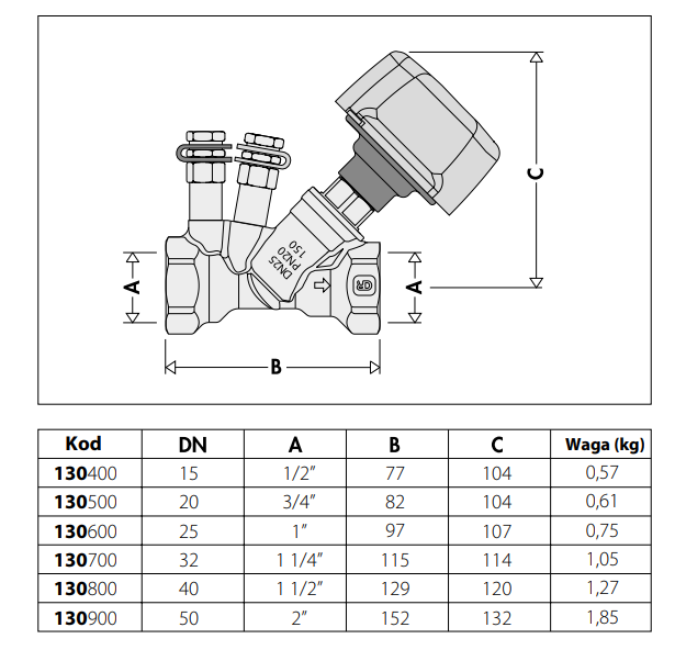Zawory równoważące są urządzeniami hydraulicznymi służącymi do dokładnego równoważenia natężenia przepływu zasilającego odbiorniki ciepła w instalacji. Poprawne zrównoważenie jest gwarancją pracy instalacji zgodnie z założeniami projektowymi, wysokiego komfortu cieplnego i niskiego zużycia energii. W zaworach gwintowanych z serii 130 pomiar przepływu odbywa się za pomocą zwężki Venturiego umieszczonej wewnątrz korpusu zaworu. Zwężka zapewnia wysoką dokładność pomiarową oraz ułatwia poprawne wykonanie równoważenia instalacji.