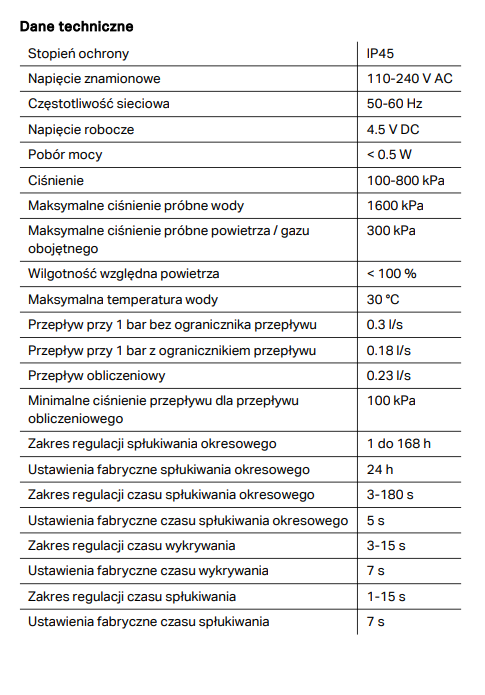 - Możliwość regulacji spłukiwania okresowego