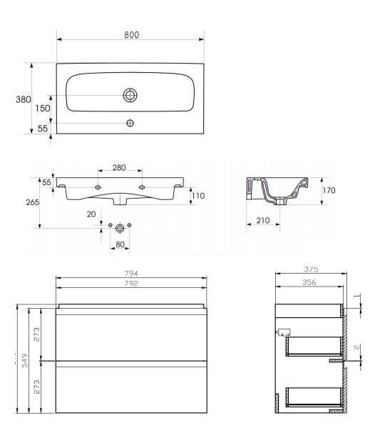 Zestaw składa się z umywalki 80 cm o zmniejszonej głębokości oraz dopasowanej do niej szafki podumywalkowej. Dzięki temu może być zainstalowany nawet w bardzo wąskich łazienkach. Front wykonany został z płyty MDF, lakierowanej w kolorze białym. W tym samym kolorze lakierowany jest również korpus. Szafka posiada wygodne, frezowane uchwyty i system cichego domykania drzwi. Zestaw przeznaczony jest do samodzielnego montażu.