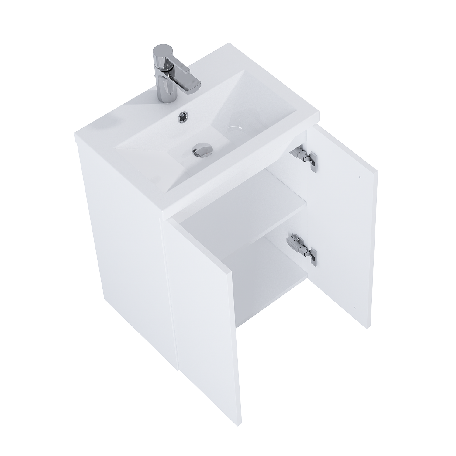 Set Kido 50 cm, 2 drzwiczek, zaopatrzony w 1 półkę z regulowaną wysokością. Wykonany z materiałów wysokiej jakości, front i korpus z płyty lakierowanej w kolorze white matt, okucia z funkcją cichego, miękkiego samodomyku. Set o głębokości 358 mm, składa się z szafki podumywalkowej i umywalki. Set sprzedawany bez uchwytów. Uchwyty do indywidualnego wyboru.