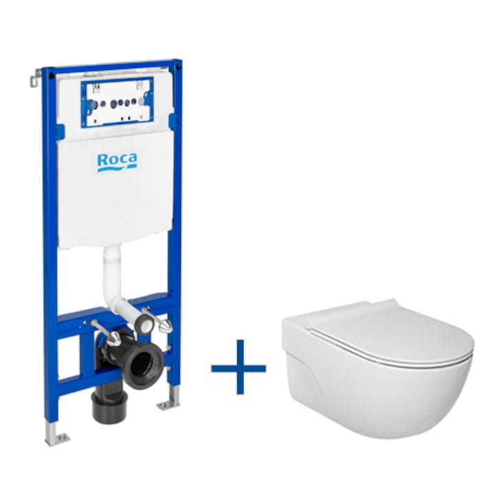 Zestaw: ROCA Stelaż DUPLO ONE 3/6L + Miska wisząca MERIDIAN Rimless biały + Deska SLIM wolnoopadająca A893104520