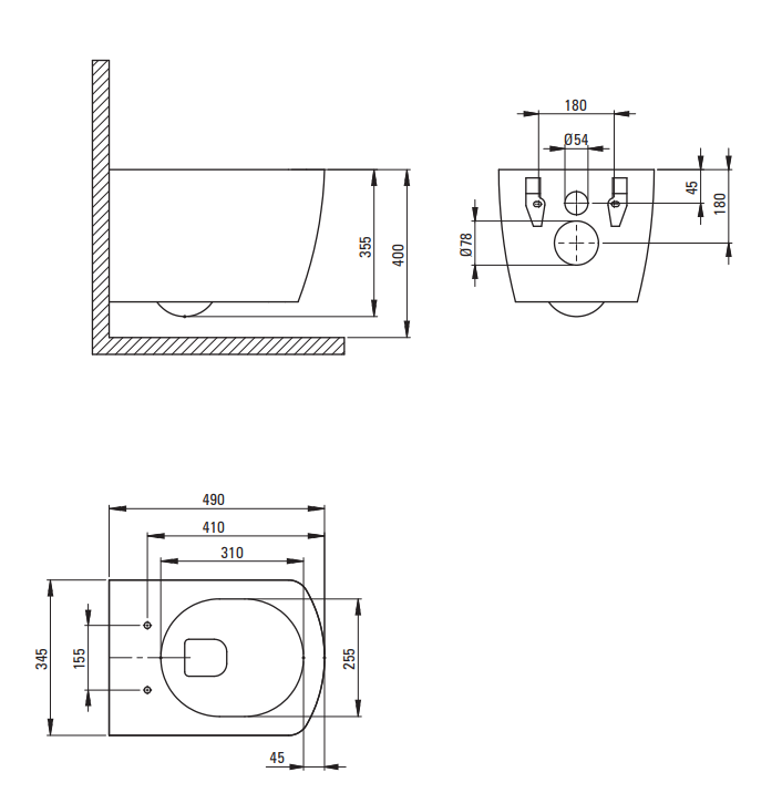 - Miska bezkołnierzowa ułatwiająca utrzymanie czystości i higieny