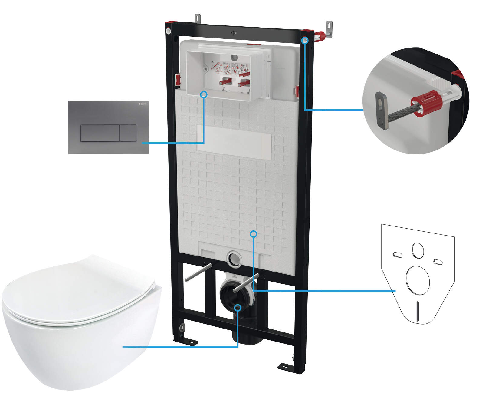 Zestaw DEANTE SILIA 6 w 1 stelaż, miska, deska, przycisk titanium CDLT6ZPW