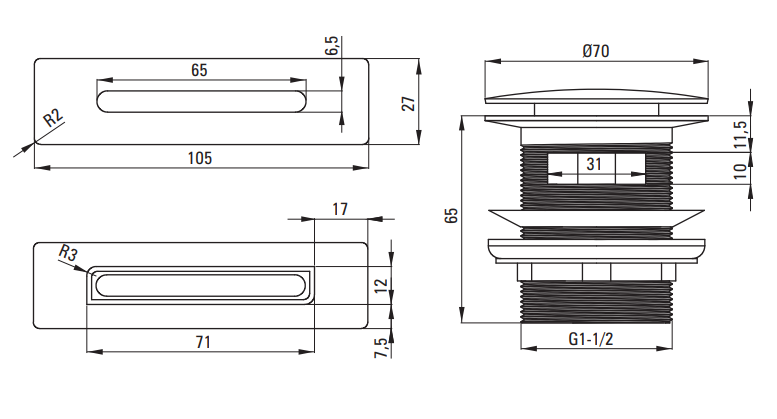 Zestaw akcesoriów do wanny - korek i przelew