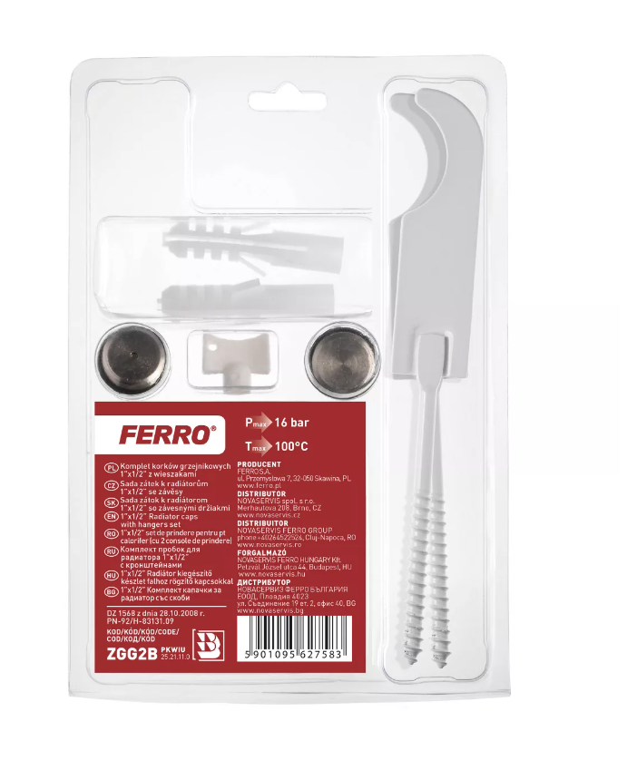 Zestaw korków grzejnikowych FERRO z dwoma wieszakami ZGG2B