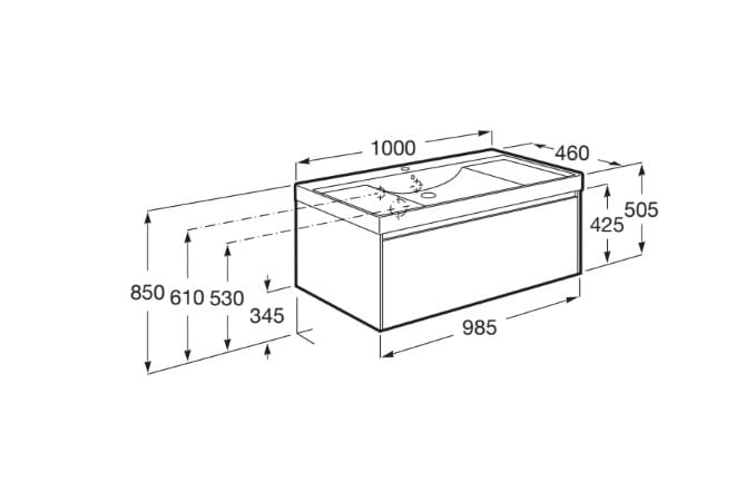 - Wymiary/ Umywalka z szafką/ Długość (mm): 1000