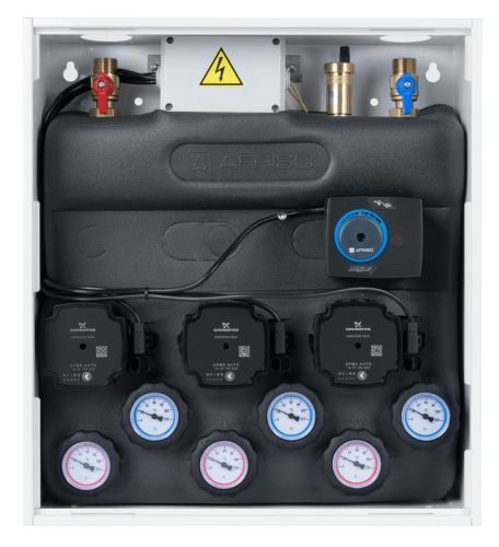 - Wyposażony w pompy Grundfos UPM3 oraz zawór obrotowy z siłownikiem ARM 141.