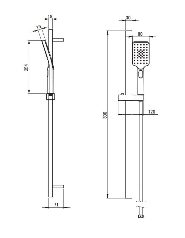 - drążek wykonany ze stali z uchwytem posiadającym regulowany kąt ustawienia słuchawki prysznicowej