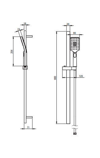 - drążek wykonany ze stali z uchwytem posiadającym regulowany kąt ustawienia słuchawki prysznicowej