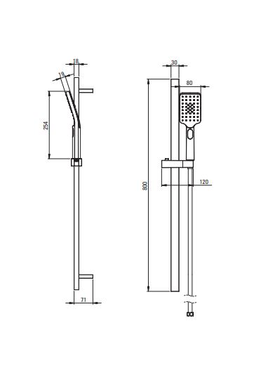 - drążek wykonany ze stali z uchwytem posiadającym regulowany kąt ustawienia słuchawki prysznicowej