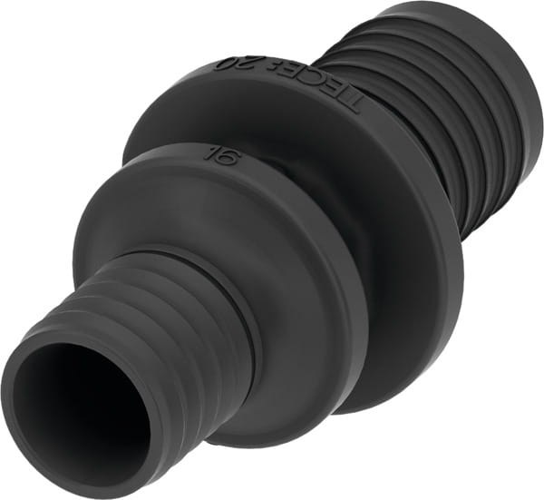 Złączka redukcyjna z wysokowydajnego tworzywa PPSU do łączenia rury wielowarstwowej TECEflex lub rury PE-X o tym samym rozmiarze za pomocą tulei zaciskowej bez dodatkowych pierścieni uszczelniających typu o-ring (bez tulei zaciskowych TECEflex).