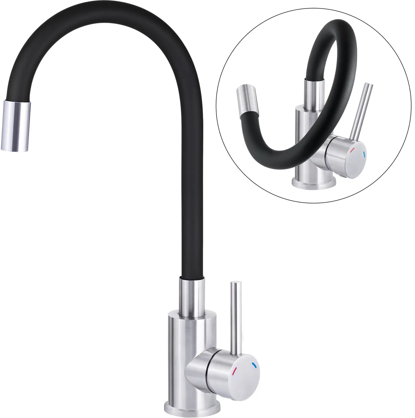 Dodatkowo został wzbogacony warstwą hydrofobową, ułatwiającą spływanie pojedynczych kropel. W tej samej kolorystyce jest też bateria z wygodną wylewką. Jest to model z praktyczną, elastyczną wylewką. Przelew w komorze zabezpiecza blat i kuchnię przed zalaniem. Nadmiar wody sprawnie zostaje odprowadzony do syfonu.