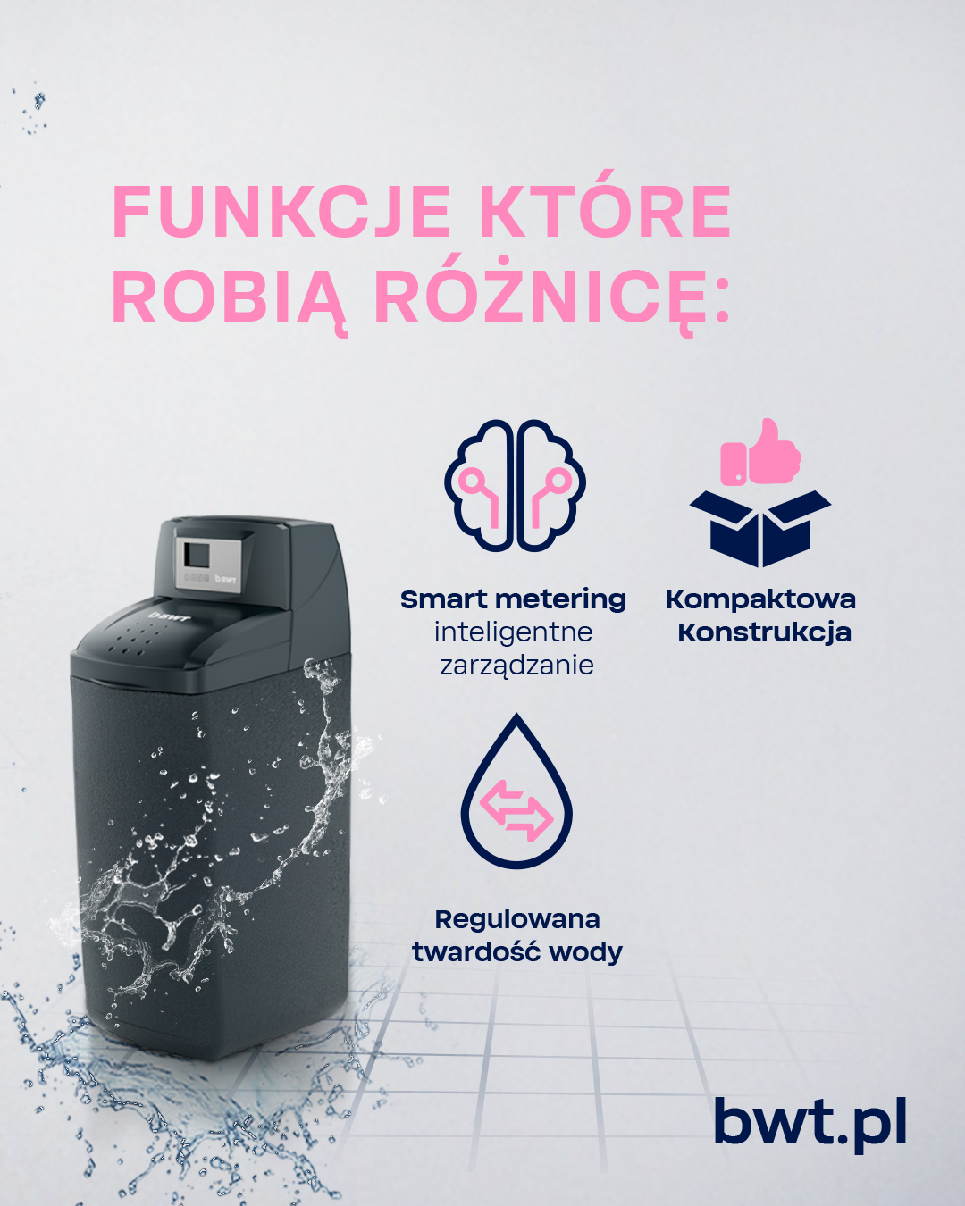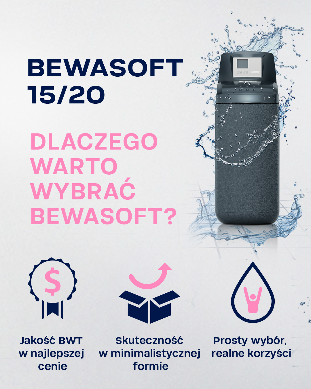 BWT Bewasoft to kompaktowy zmiękczacz wody, który łączy niezawodność, funkcjonalność i atrakcyjną cenę. Zapewnia miękką wodę każdego dnia, chroniąc Twoje urządzenia i dbając o skórę oraz włosy.